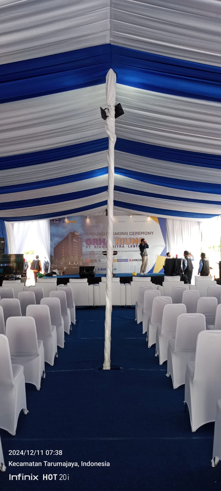 Menyediakan berbagai jenis tenda dengan desain elegan dan kokoh untuk acara pernikahan, pesta, pameran, maupun event skala besar.