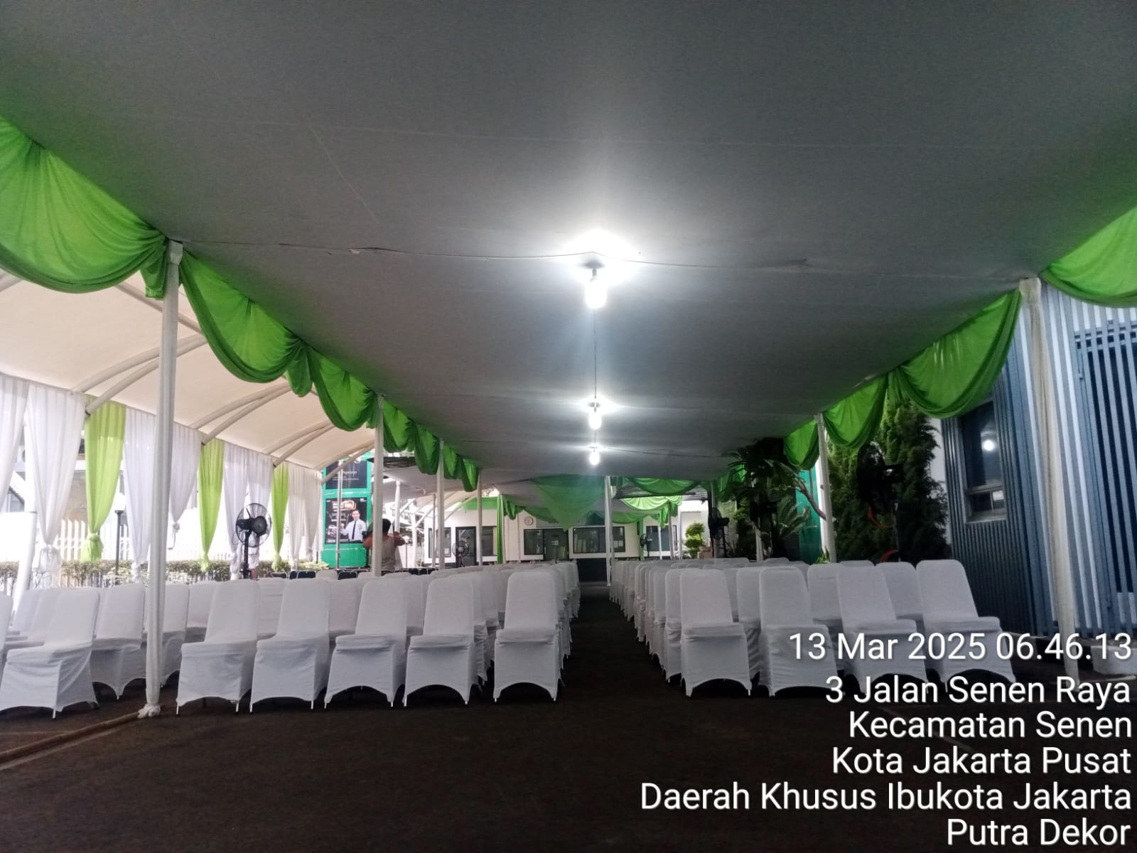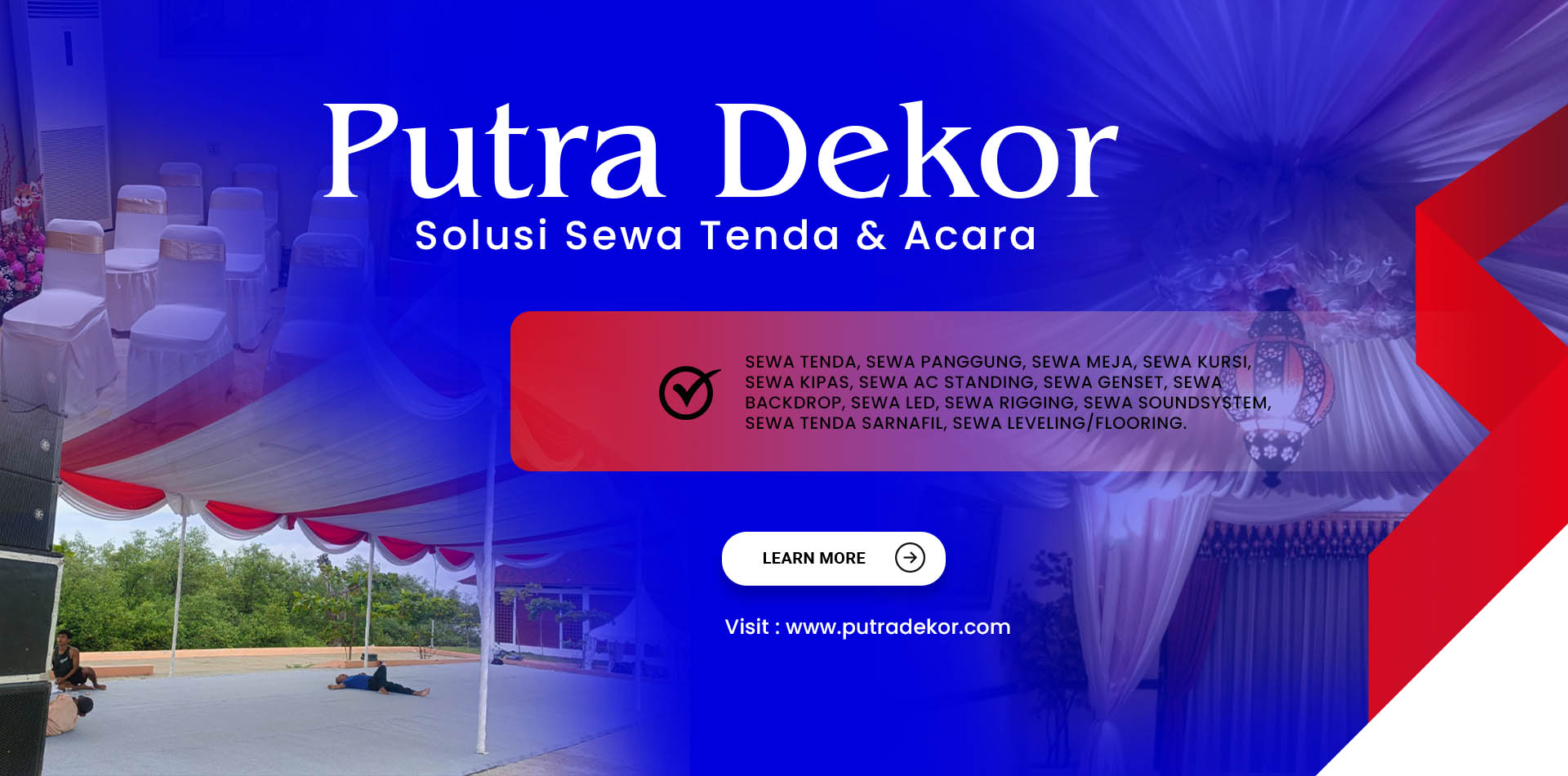Putra Dekor adalah penyedia jasa sewa tenda dan perlengkapan acara terpercaya di Jabodetabek. Kami menghadirkan berbagai kebutuhan event, mulai dari tenda, panggung, meja, kursi, kipas, AC standing, genset, backdrop, LED, rigging, soundsystem, hingga tenda sarnafil dan flooring. Dengan dukungan tim profesional dan peralatan berkualitas, Putra Dekor berkomitmen memberikan layanan terbaik yang rapi, tepat waktu, serta sesuai kebutuhan acara Anda. Kepuasan dan kenyamanan pelanggan adalah prioritas utama kami dalam setiap penyelenggaraan acara, baik untuk pernikahan, pameran, gathering, maupun event besar lainnya.