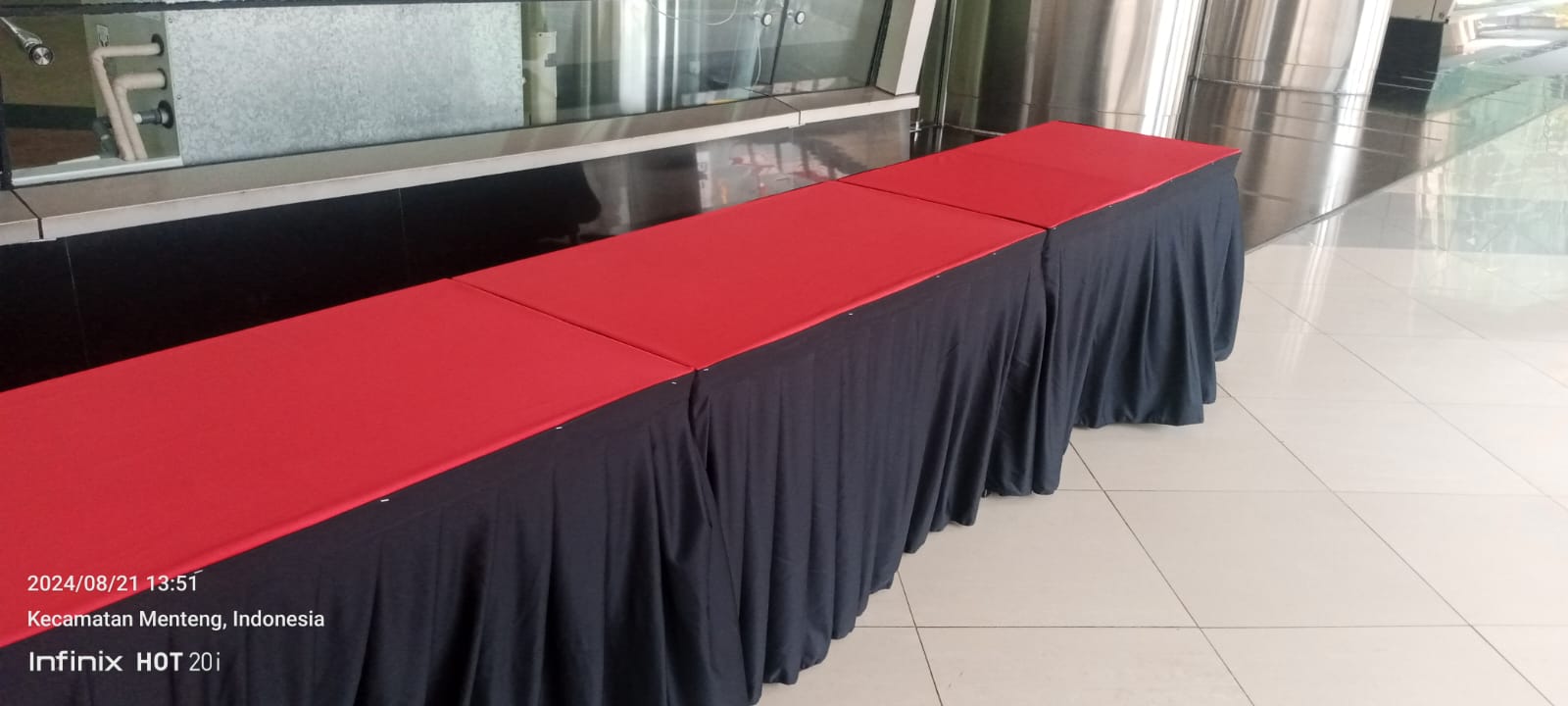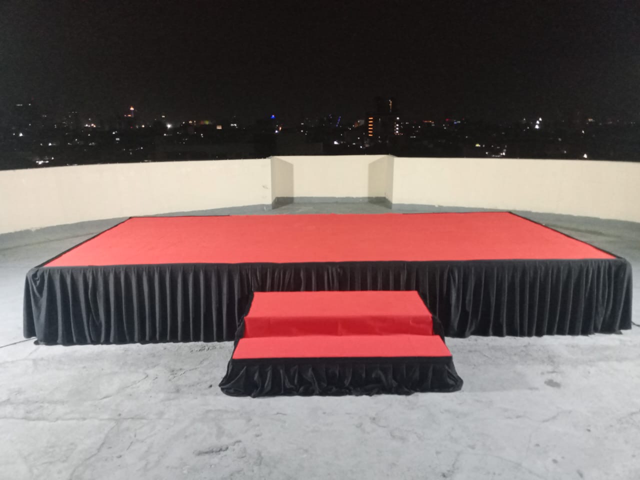 Panggung dengan ukuran dan desain sesuai kebutuhan acara, kuat, aman, dan rapi untuk mendukung kesuksesan event Anda.